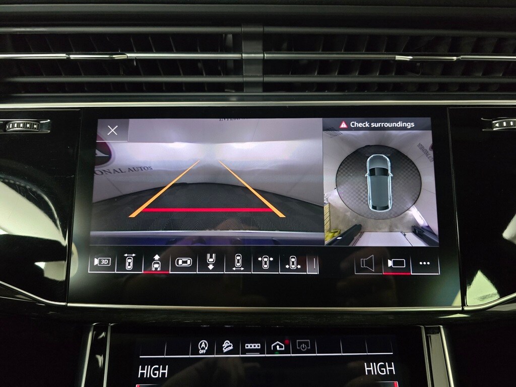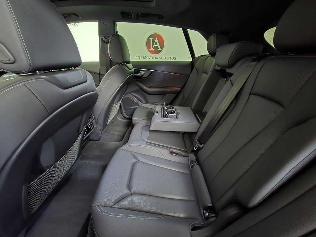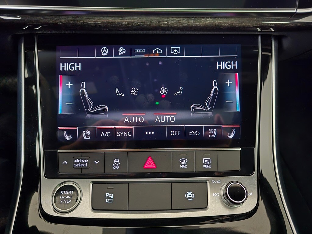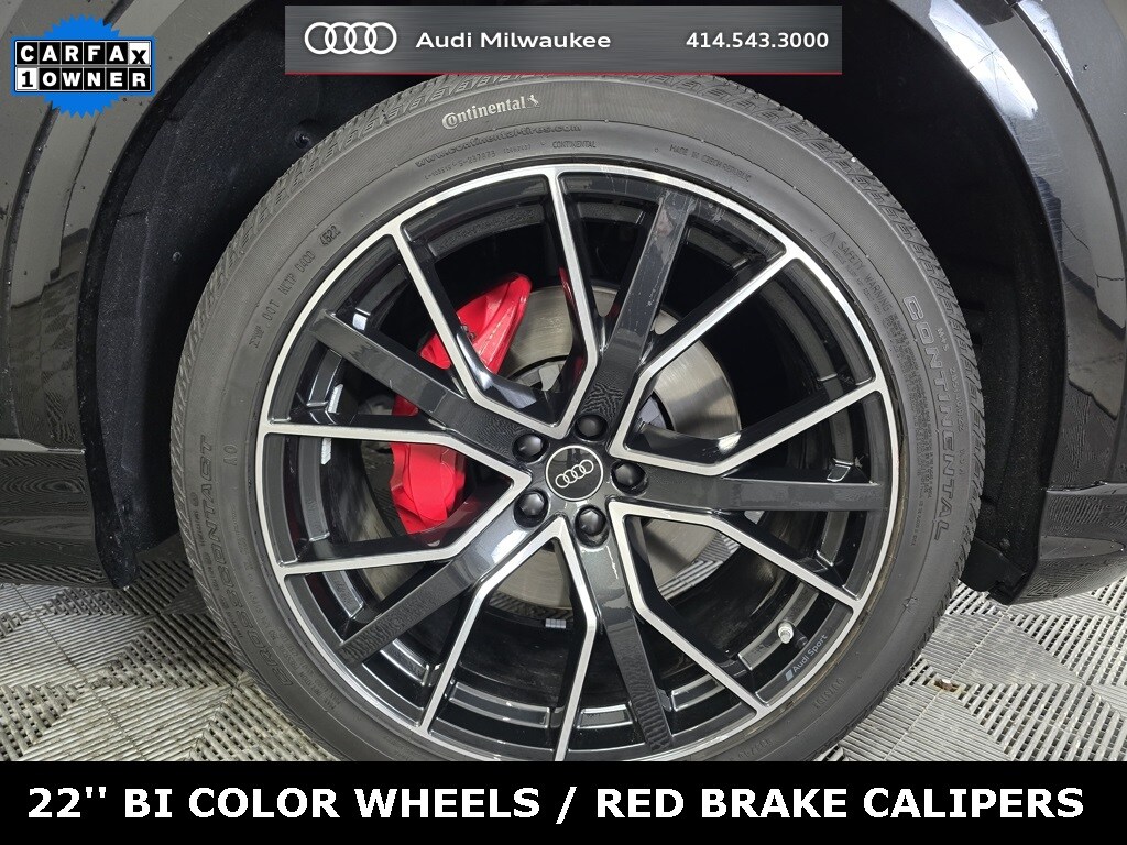 4-Zone Automatic Climate Control, Adaptive suspension, Alloy wheels, Audi Adaptive Cruise Assist w/Lane Guidance, Auto High-beam Headlights, Auto-dimming Rear-View mirror, Automatic temperature control, Bang & Olufsen 3D Premium Sound System, Black Roof Rails, Brake assist, Compass, Contour/Ambient LED Interior Lighting Package, Convenience Package, Dual front impact airbags, Exterior Parking Camera Rear, Front Seats w/Ventilation, Fully automatic headlights, Heated Front Bucket Seats, Heated Rear Seats, Heated Steering Wheel, High-Gloss Black Exterior Elements, Illuminated Door Sills, Leather Seating Surfaces, Leather steering wheel, Memory seat, Navigation system: Audi MMI Navigation plus with Touch Response, Outside temperature display, Overhead console, Power Liftgate, Power moonroof: Panoramic, Premium Plus Package, Rain sensing wipers, Red Brake Calipers, S Line Exterior, S Line Fender Badges, S Line Illuminated Door Sills, S Line Plus Package, S Line Style Package, Security system, Top View Camera System, Tow Hitch Receiver, Towing 7 Pin Connector, Towing Package, Wheels: 22" 5-V-Spoke-Star Design Bi-Color Finish.