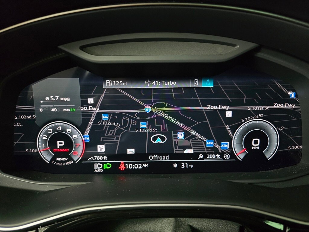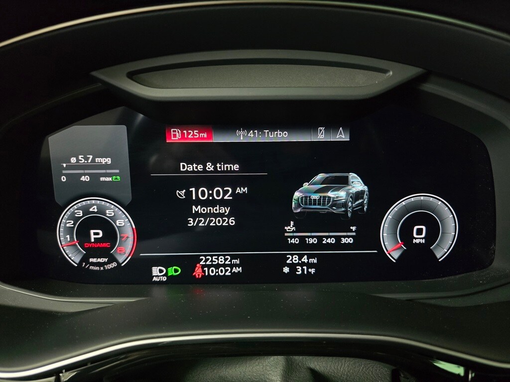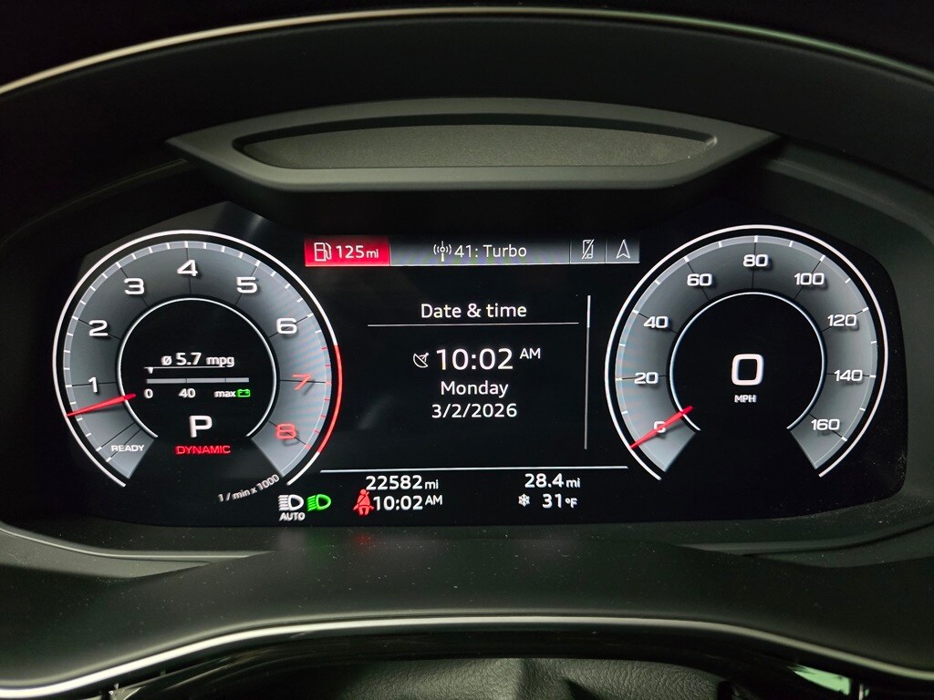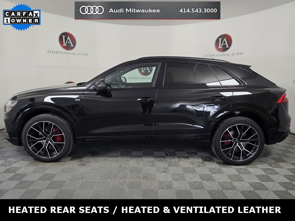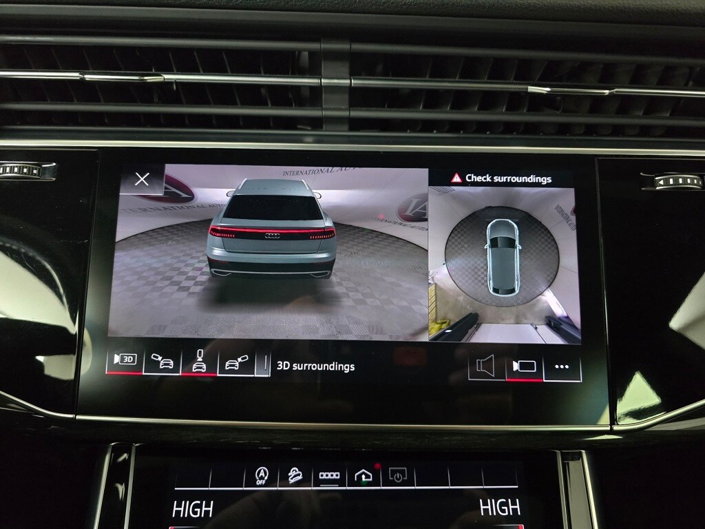 4-Zone Automatic Climate Control, Adaptive suspension, Alloy wheels, Audi Adaptive Cruise Assist w/Lane Guidance, Auto High-beam Headlights, Auto-dimming Rear-View mirror, Automatic temperature control, Bang & Olufsen 3D Premium Sound System, Black Roof Rails, Brake assist, Compass, Contour/Ambient LED Interior Lighting Package, Convenience Package, Dual front impact airbags, Exterior Parking Camera Rear, Front Seats w/Ventilation, Fully automatic headlights, Heated Front Bucket Seats, Heated Rear Seats, Heated Steering Wheel, High-Gloss Black Exterior Elements, Illuminated Door Sills, Leather Seating Surfaces, Leather steering wheel, Memory seat, Navigation system: Audi MMI Navigation plus with Touch Response, Outside temperature display, Overhead console, Power Liftgate, Power moonroof: Panoramic, Premium Plus Package, Rain sensing wipers, Red Brake Calipers, S Line Exterior, S Line Fender Badges, S Line Illuminated Door Sills, S Line Plus Package, S Line Style Package, Security system, Top View Camera System, Tow Hitch Receiver, Towing 7 Pin Connector, Towing Package, Wheels: 22" 5-V-Spoke-Star Design Bi-Color Finish.