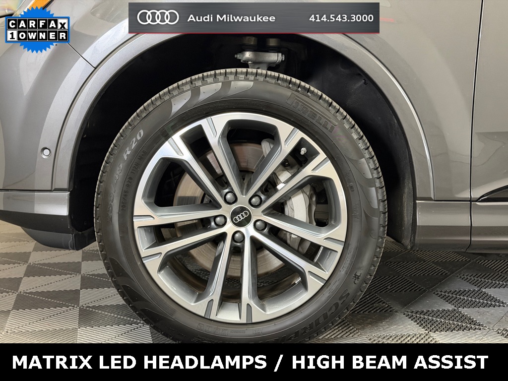 3rd row seats: bench, ABS brakes, Active Cruise Control, Alloy wheels, Anthracite Gray Audi Rings, Audi Beam Rings, Auto High-beam Headlights, Automatic temperature control, Bang & Olufsen Premium Sound System with 3D Sound, Black Exterior Trim, Convenience Plus Package, Dark Chrome Exhaust Tips, Exterior Parking Camera Rear, Heated Front Bucket Seats, Heated Steering Wheel, Illuminated entry, Leather Seating Surfaces, LED Interior Lighting Package Plus, Memory seat, Navigation system: Audi MMI Navigation plus with Touch Response, Power Liftgate, Power moonroof: Panoramic, Rain sensing wipers, Security system, Top View Camera System, Traffic Sign Recognition, Wheels: 20" 5-Double-Spoke Bicolor Finish.